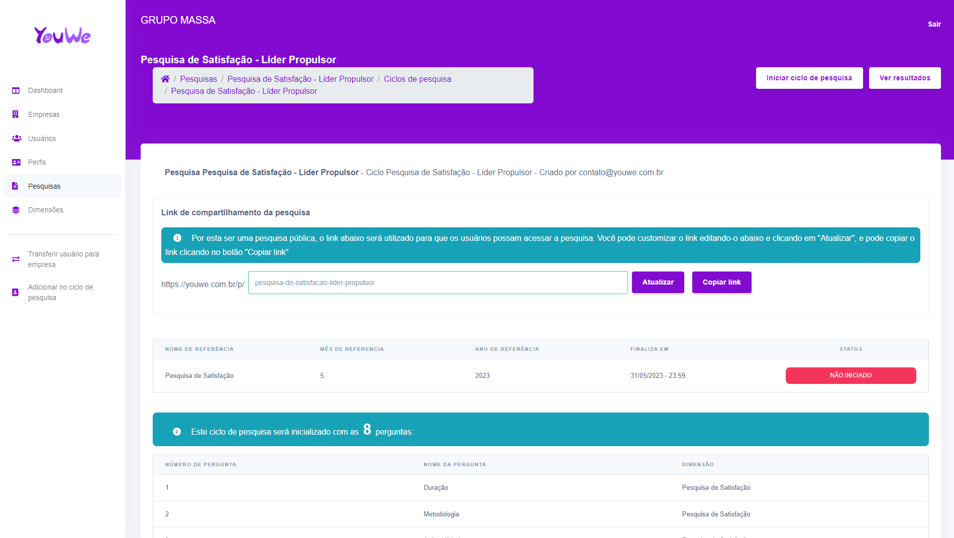 “Nossa experiência utilizando a YouWe foi ótima, é intuitiva, de fácil utilização e com demonstração das análises e respostas de forma inteligente e didática. Estamos muito satisfeitos com o que ela oferece.”