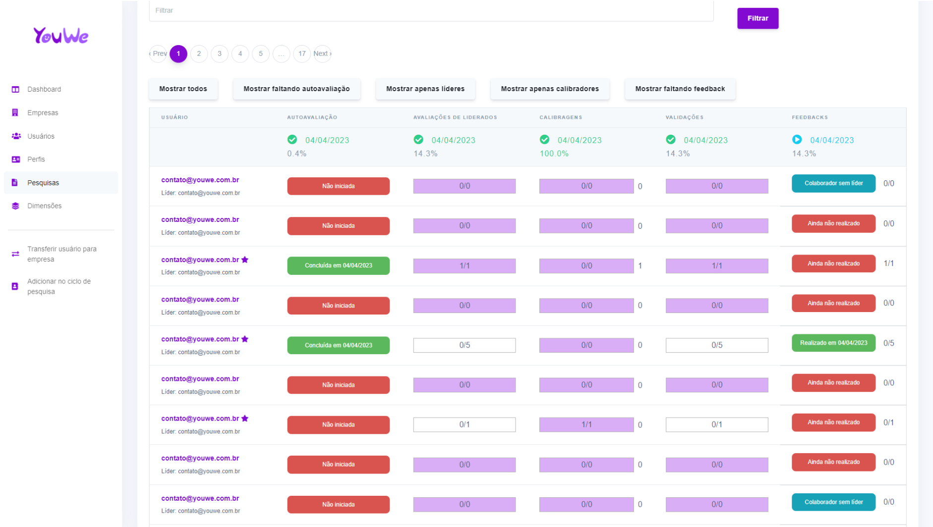 Utilize os filtros e agregadores da YouWe para mensurar o melhor dos seus colaboradores.